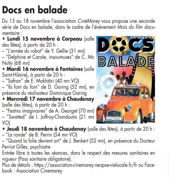 Comme chaque année, la salle des Fêtes de Chaudenay nous offre un écrin connu et apprécié pour nos Docs en balade, en plus de nos séances CinéVillage.