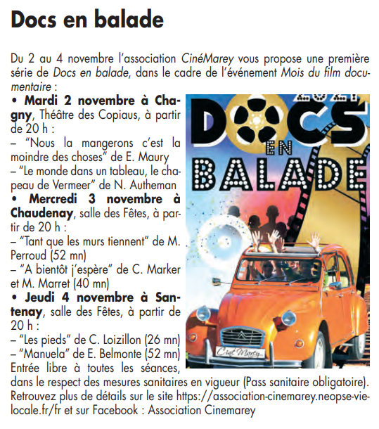 Seconde séance à Chagny pour la cloture de nos Docs en balade 2021 .